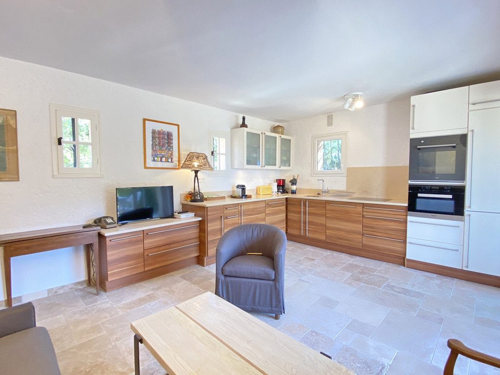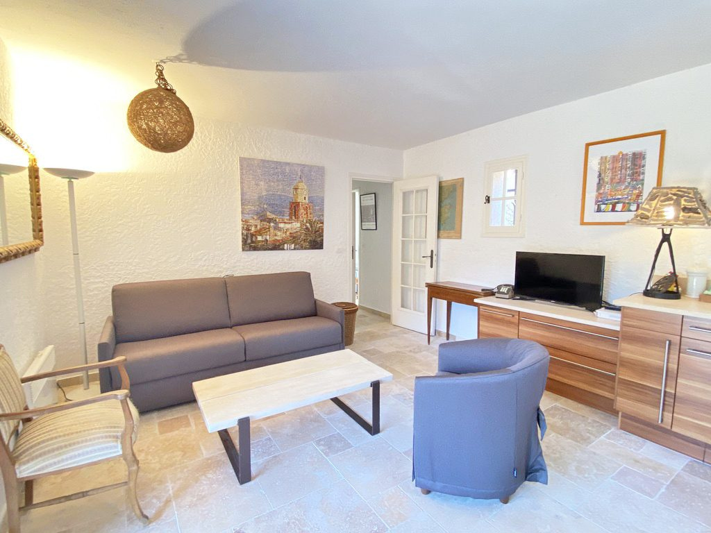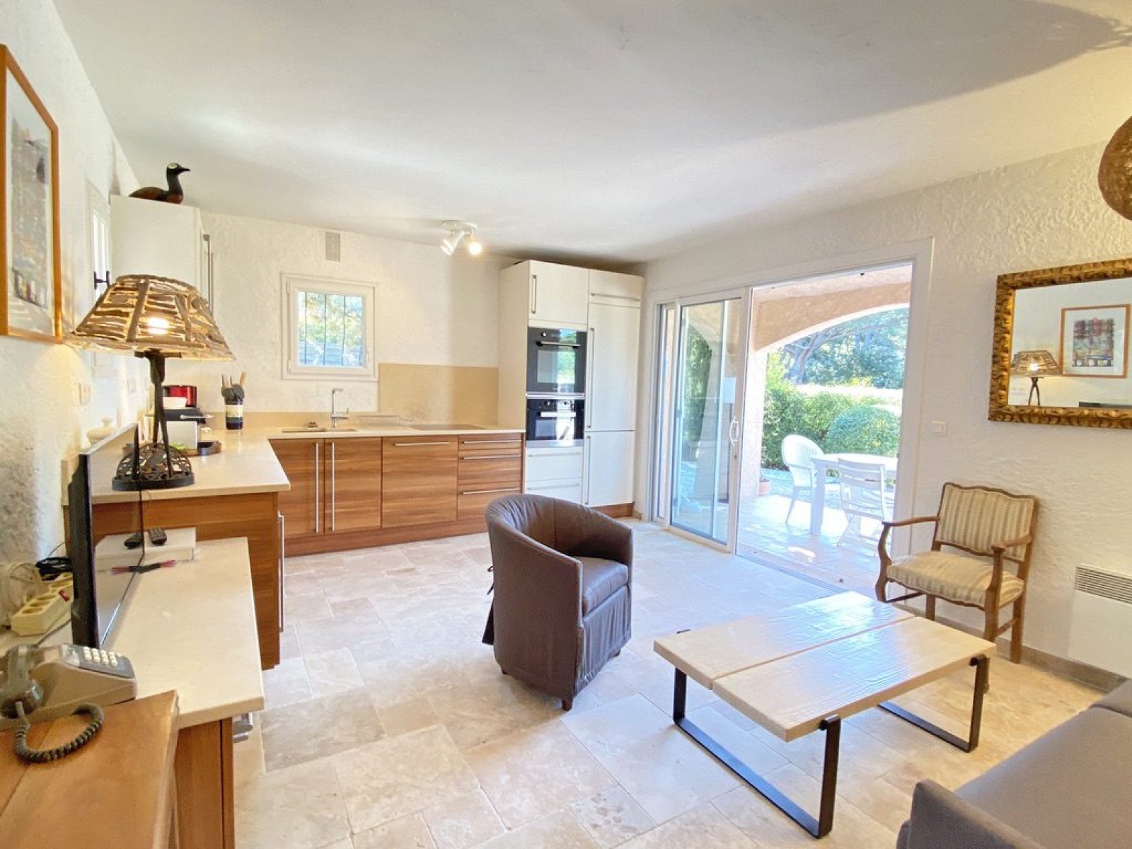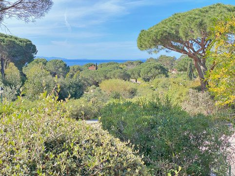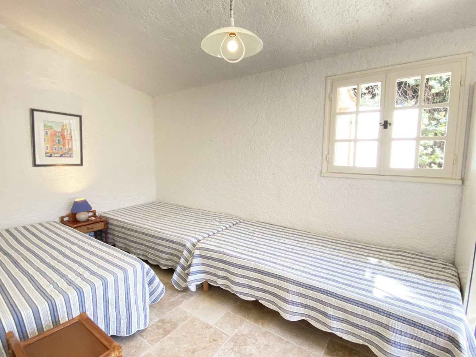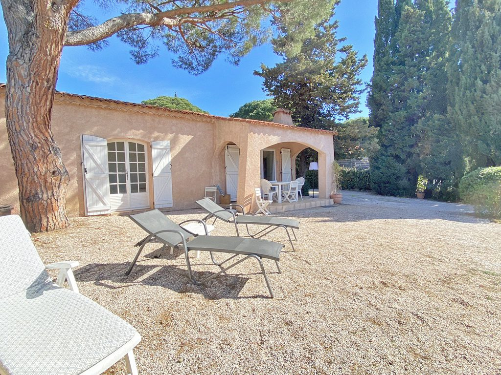 QUARTIER DES OLIVIERS dans le domaine de la Baie de VAlmer à env. 600m de la plage de Gigaro et 200m de la piscine et des tennis de la résidence. Beau Mas en angles avec 2 chambres ( 1 lit 140 + 3 lits 100 ), salle de douche avec W.C., séjour avec cuisine ouverte, large terrasse avec belle vue mer. Equipement lave vaisselle, lave linge, télévision, Wifi. et Climatisation. Parking dans le jardin. n° d'enregistrement : 83048 001603 46 classé 2* Tarif 3 pièces catégorie C