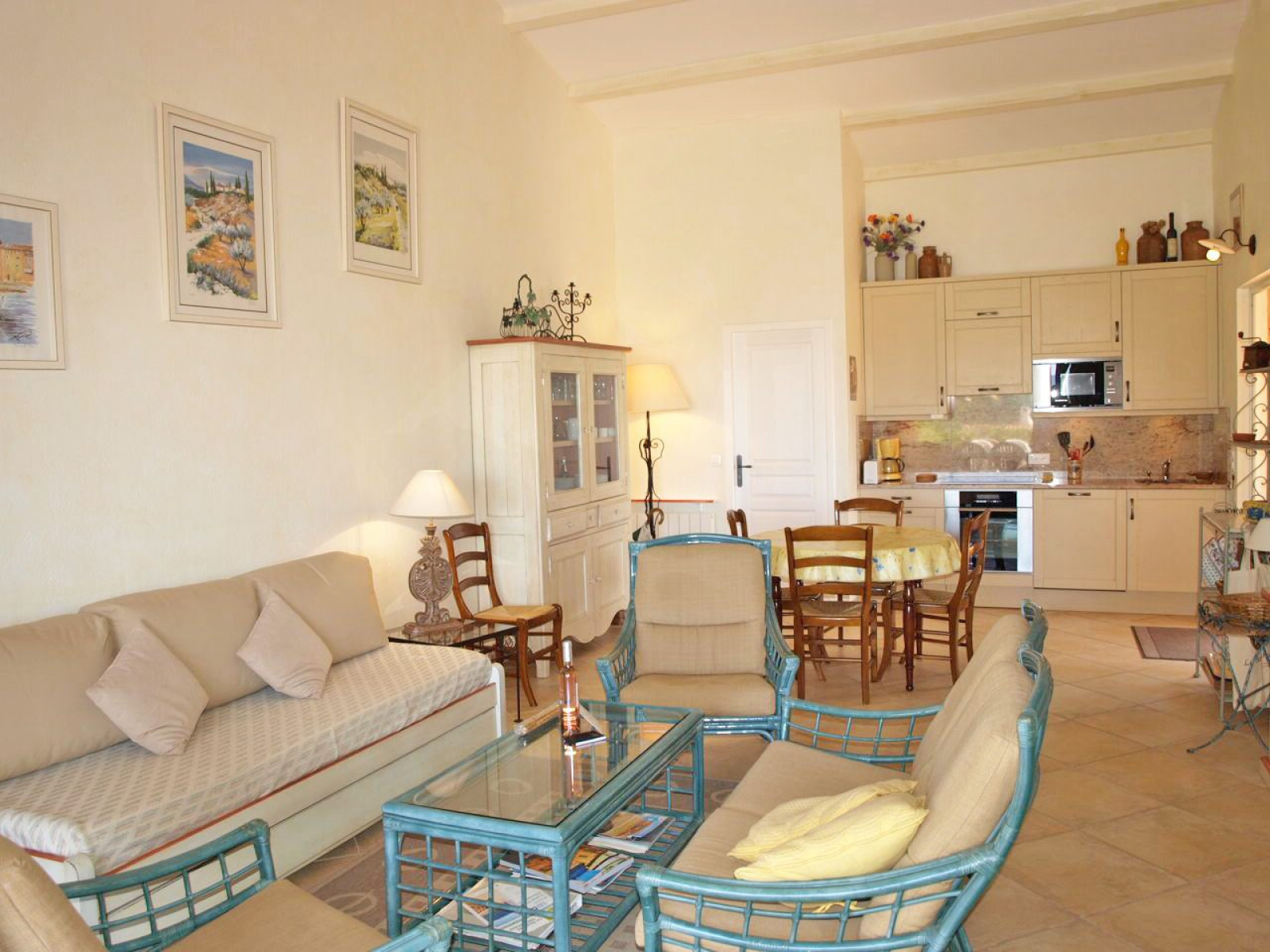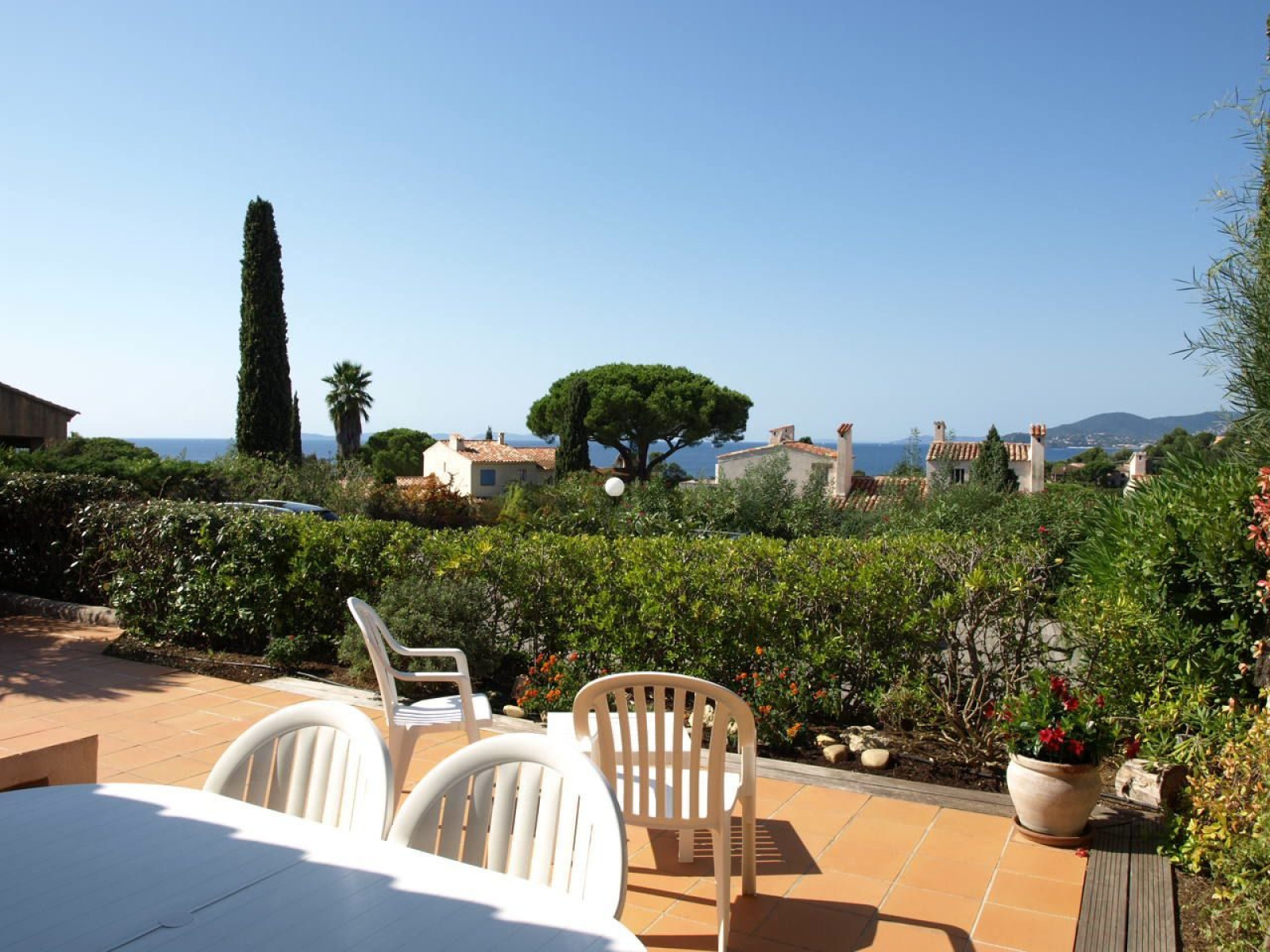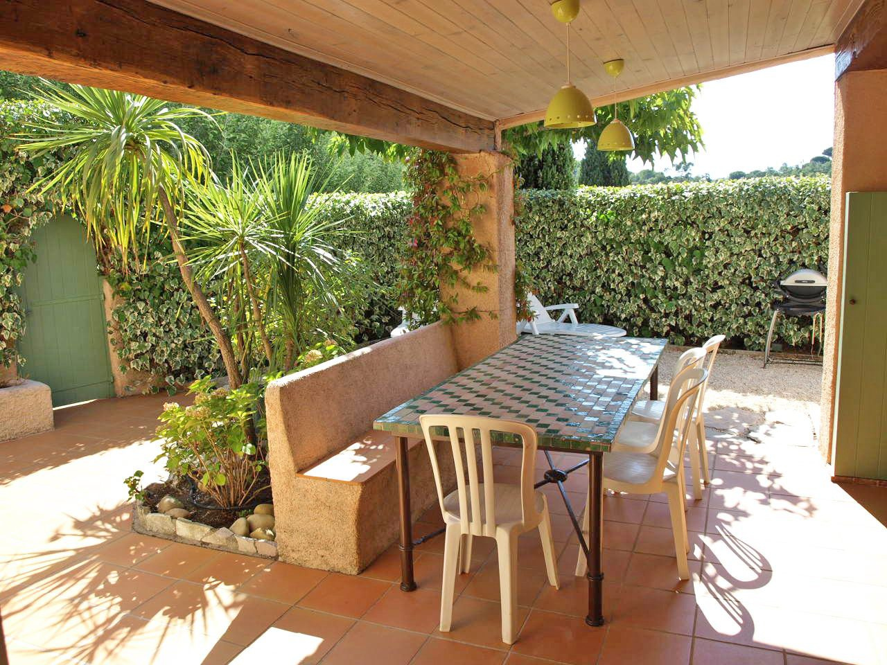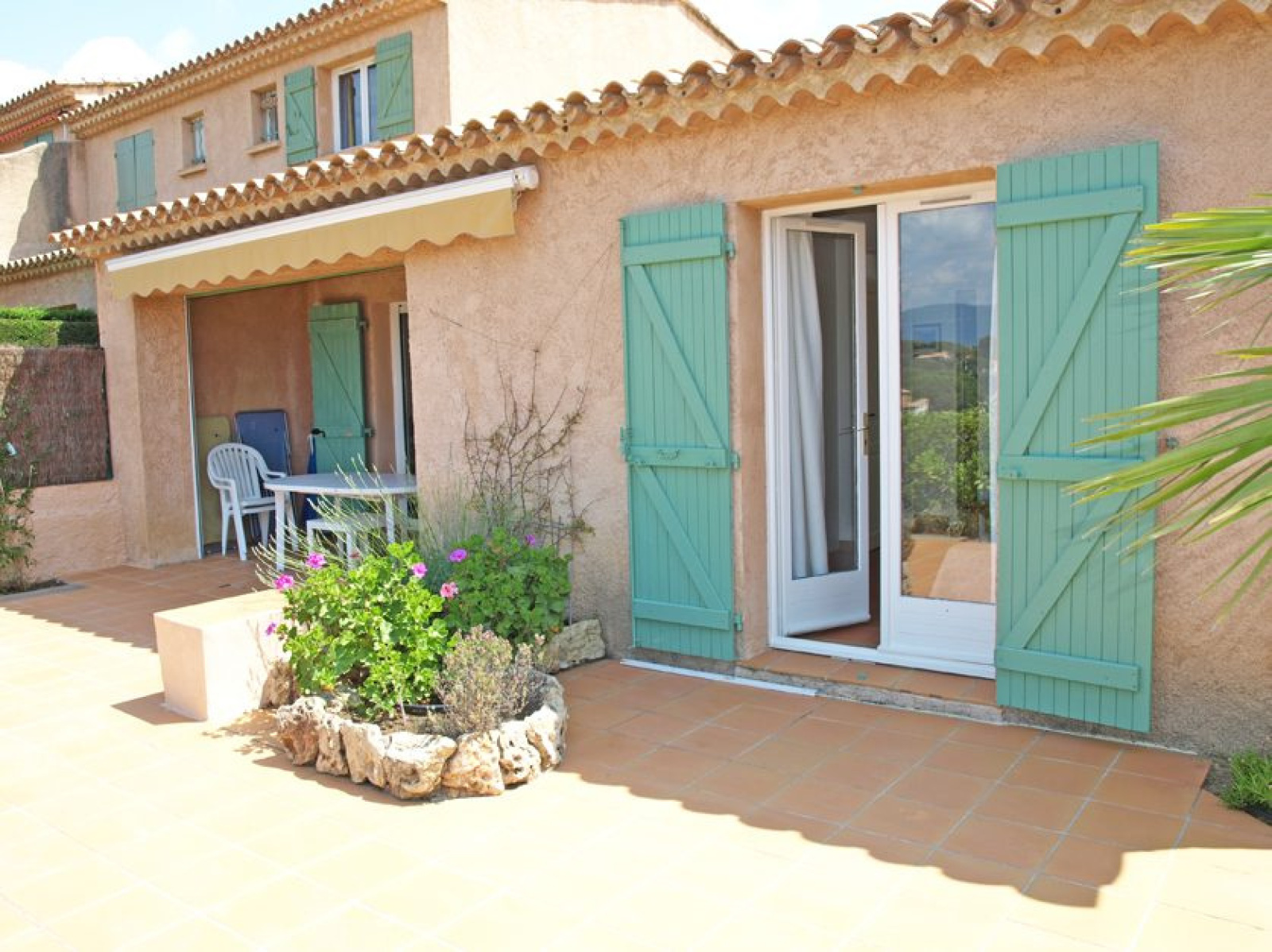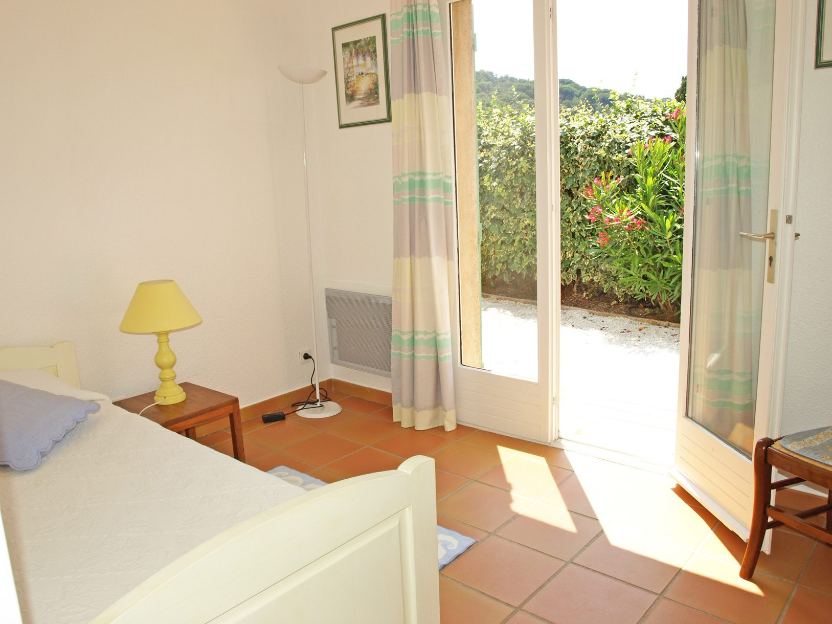 MAS DE LA MER / BAIE DE VALMER, très beau 3 pièces en angle de plain pied à env. 350 m de la plage, piscine et tennis de la résidence également accessibles à pied. Qualité soignée, belles terrasses devant et derrière le Mas. 1 chambre lit 2x80, 1 chambre 2 lits gigognes 80, 2 salles de douche avec 2 W.C. Equipé Climatisation, lave linge, lave vaisselle, fibre wifi, télévision. Animaux non acceptés. n° d'enregistrement : 83048 001601 22 classé 3* Tarifs 4 pièces Catégorie A