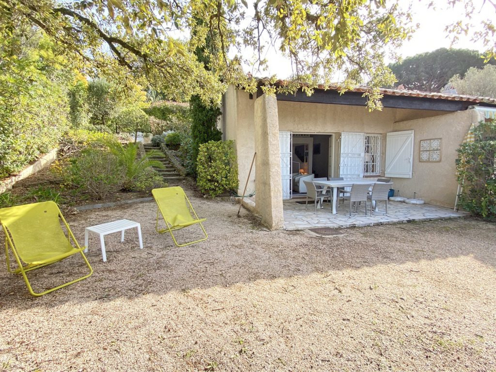 MAS DE GIGARO Quartier des Tamaris, très beau mas d'angle 3 pièces en mezzanine avec magnifique vue sur mer. 2 personnes, animaux non admis. Mas soigné et confortable. Piscine et tennis dans la résidence, sortie possible par le col de collebasse pour accéder à Ramatuelle et Saint Tropez plus rapidement. n° d'enregistrement : 83048 001440 K6 classé 2* Tarif 3 pièces catégorie A