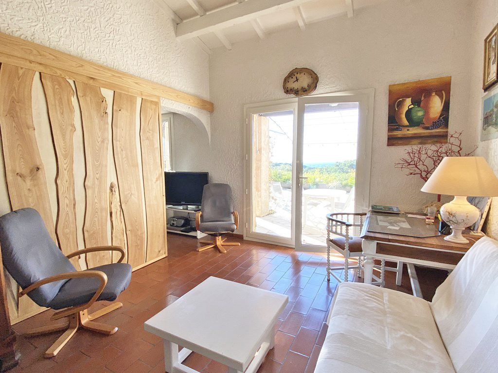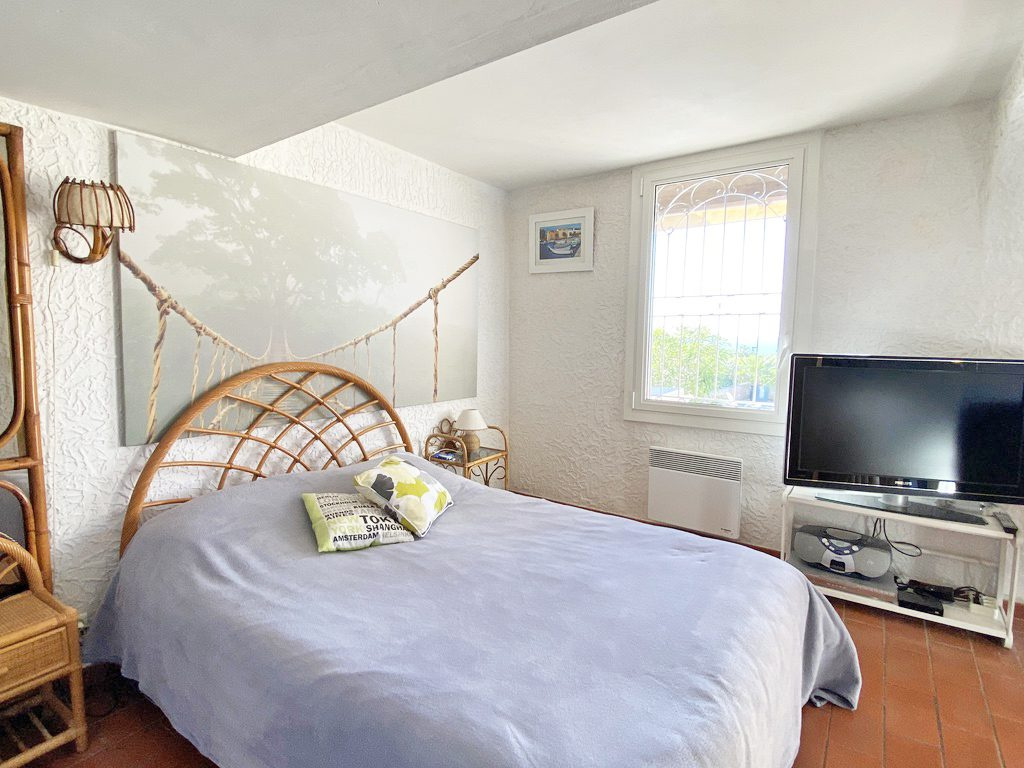 MAS DE GIGARO 3 PIECES en angle avec large terrasse et très belle vue mer. Quartier calme. Rez de jardin : 1 chambre avec lit 140, salle de douche, W.C et à l'étage en mansarde 1 chambre avec 2 lits 90, salle de douche. Un cellier avec W.C.. Très bien équipé avec Climatisation., Wifi, lave vaisselle, lave linge, congélateur, télévision. Environ 1,7 km de la plage par la route, beaucoup moins à pied pour une promenade sous les arbres. n° d'enregistrement : 83048 001602 QO classé 2* Tarif 3 pièces catégorie C