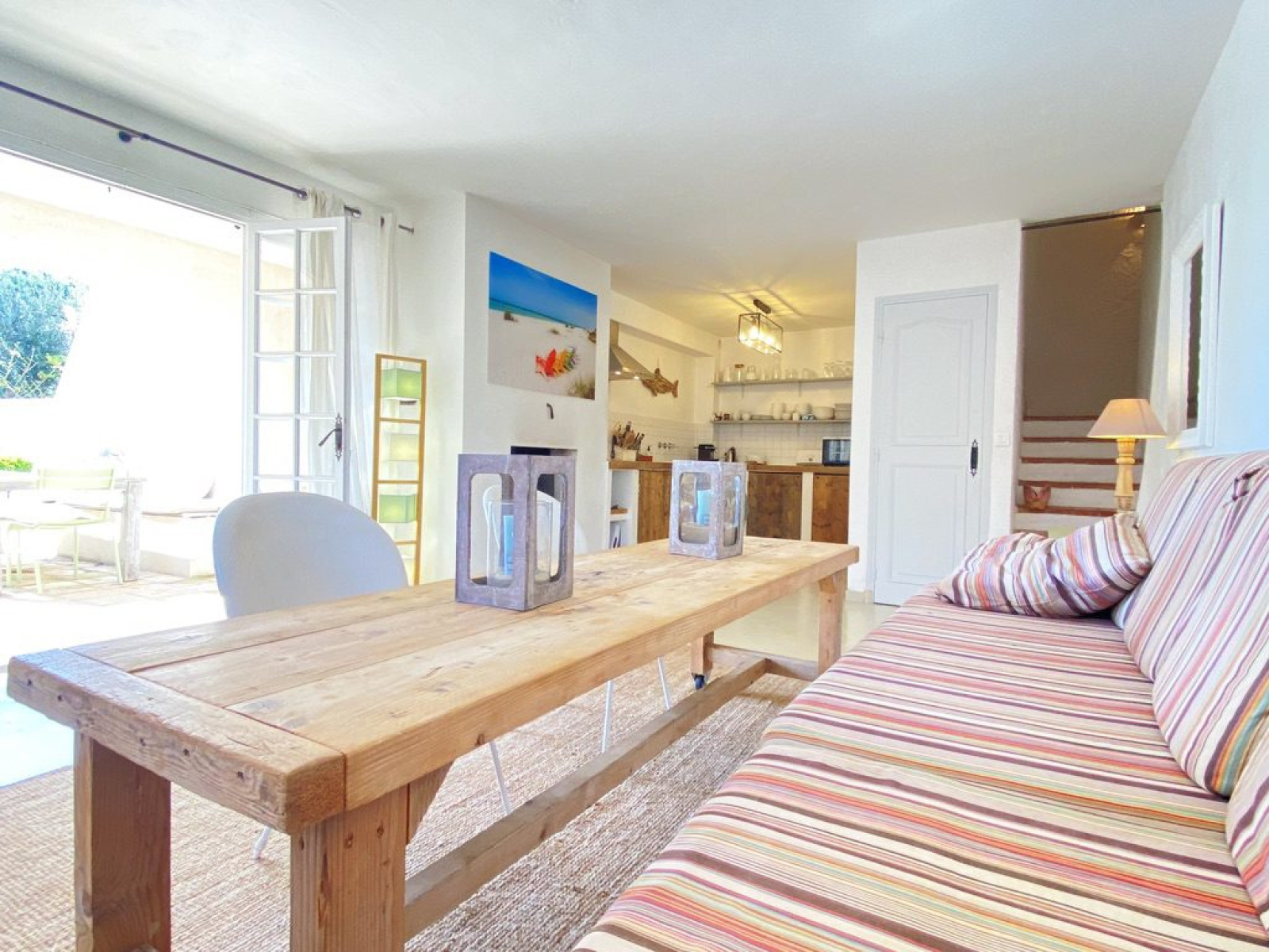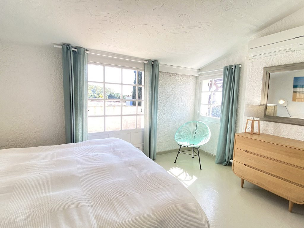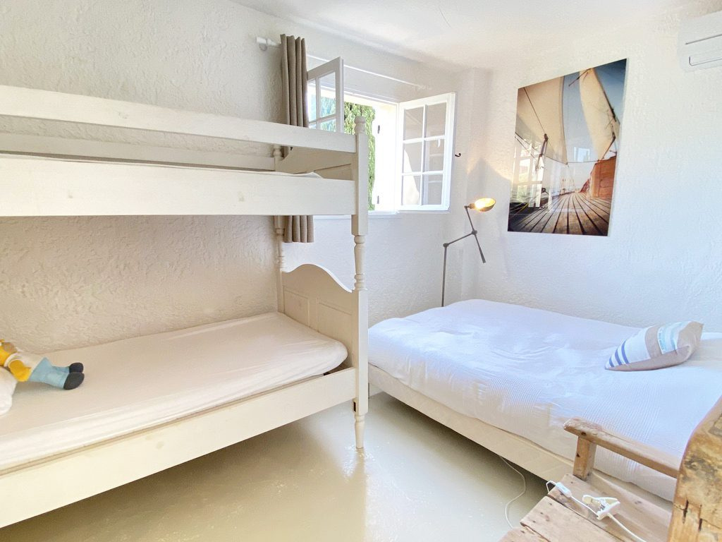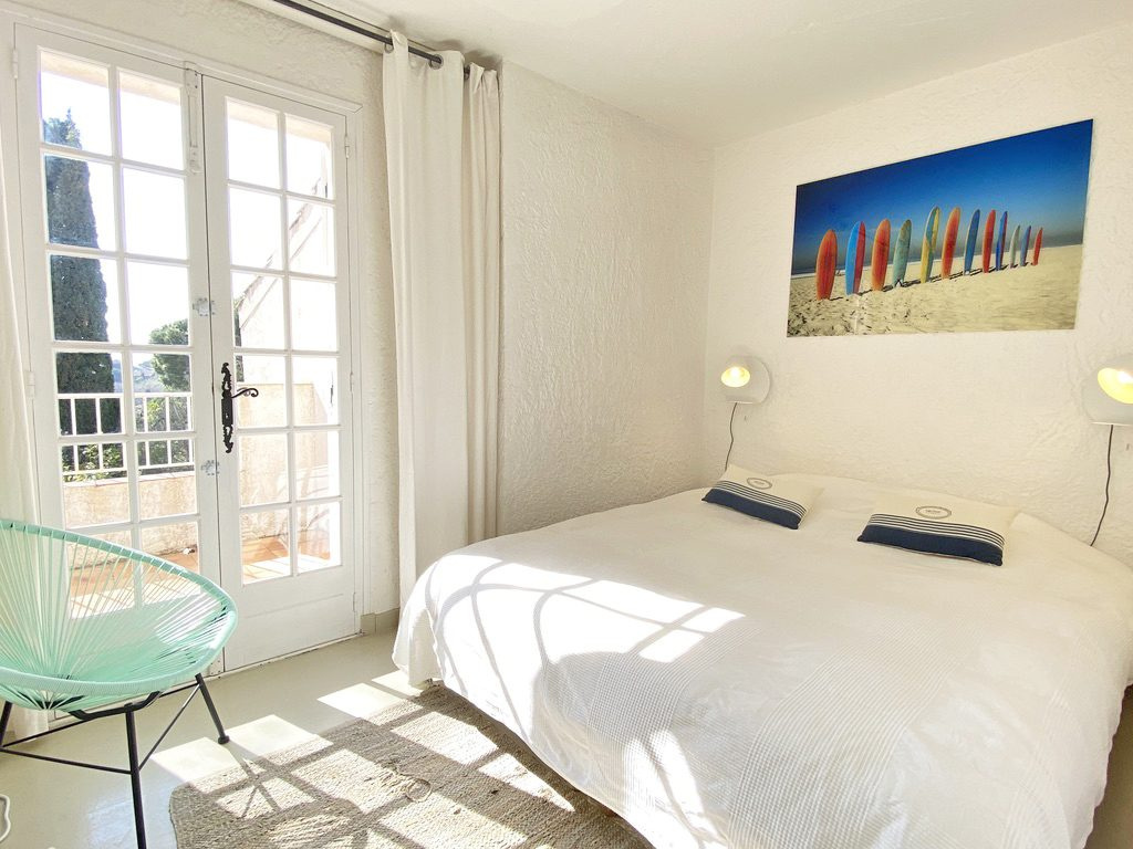 4 pièces sur 3 niveaux, large jardin en angle. Rez de jardin : séjour / cuisine, W.C., terrasse couverte et jardin 1er étage : 2 chambres, salle de douche et W.C. 2ème étage : 1 chambre, salle de douche, terrasse avec très belle vue mer équipée Lave vaisselle, lave linge, télévision, Wifi., climatisation n° d'enregistrement : 83048 001680 5G classé 2* Tarif 4 pièces catégorie A