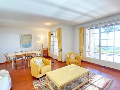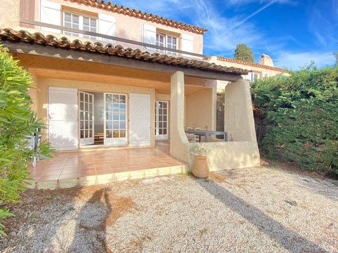 MAS DE GIGARO 4 PIECES en angle avec une fantastique vue sur mer et un large jardin, piscine et tennis de la résidence accessibles à pied. Lave vaisselle, lave linge, télévision, Wifi. étage : entrée 3 chambres, 2 salles de douche, W.C. rez-de-chaussée : grand séjour / cuisine, cellier, loggia et jardin n° d'enregistrement : 83048 001615 UA classé 2* Tarif 4 pièces catégorie A