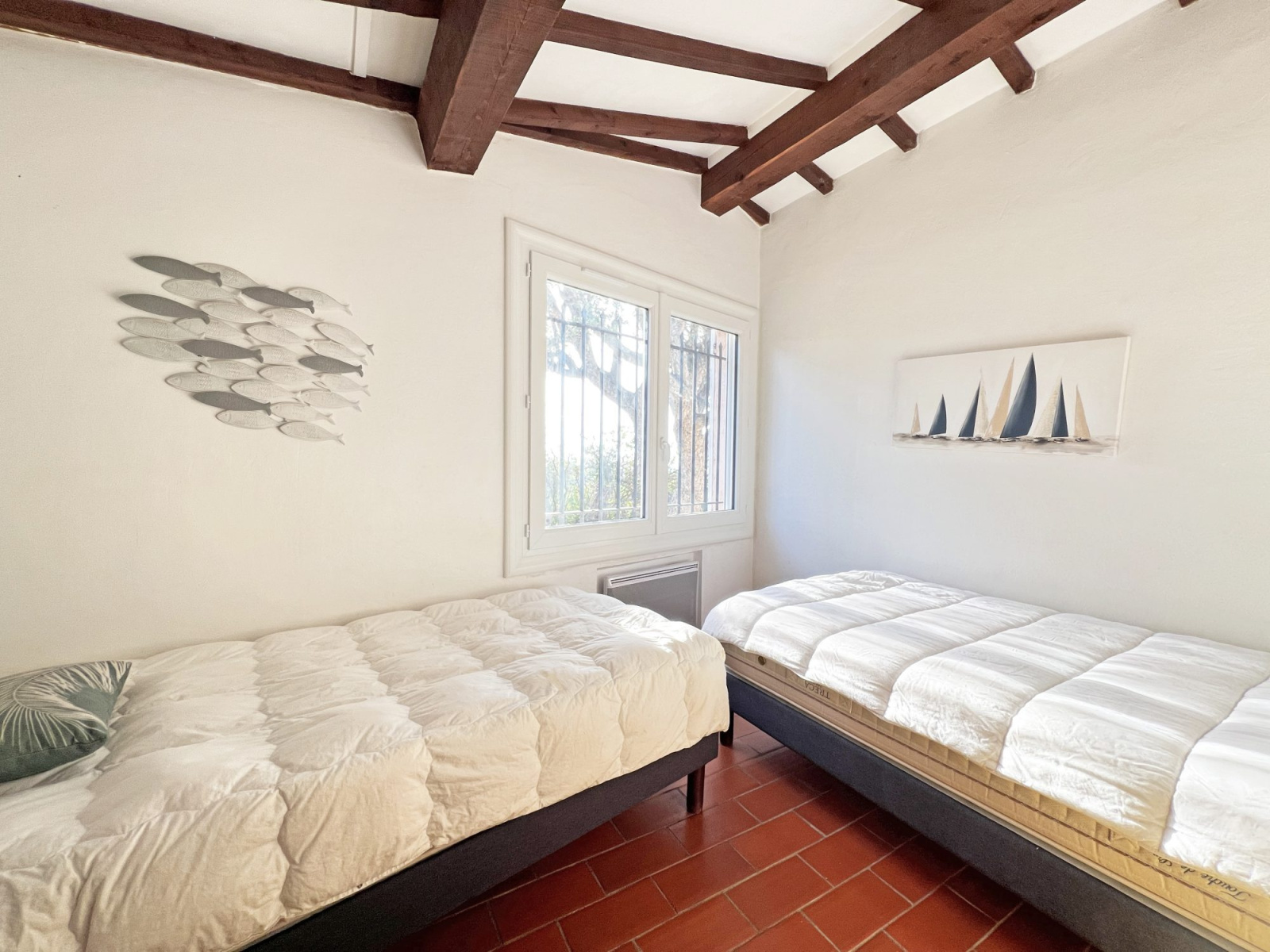 SOUS OFFRE D'ACHAT Magnifique Mas idéalement situé dans le quartier des géraniums non loin de la piscine de la résidence, Mas en excellent état avec un potentiel important de transformations intérieures ( mezzanine, salle d'eau ). A saisir absolument. Vue mer exceptionnelle. Vidéos sur demande.